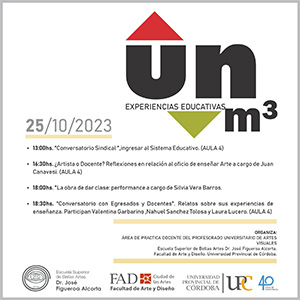 En el marco de las Jornadas de Experiencias Educativas M3. Organiza: Área de Práctica Docente del Profesorado Universitario de Artes Visuales.